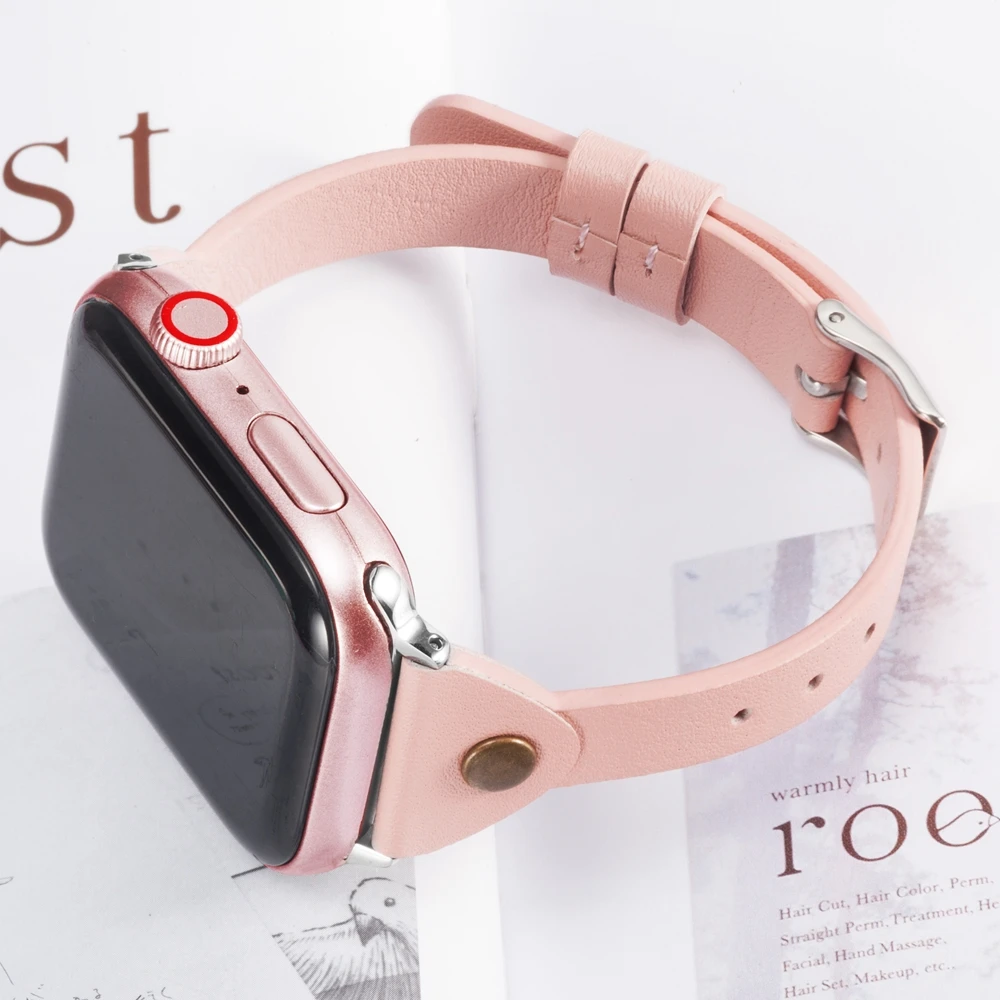 Slim Genuine Leather Strap For Apple Watch 4 5 44mm 40mm Women iwatch Band 42mm 38mm Wristband Strap for iWatch Series 4 3 2 1