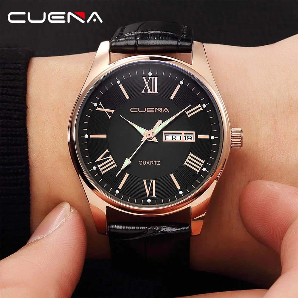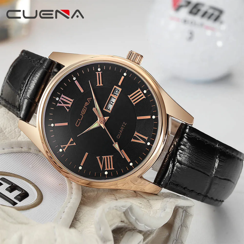 CUENA Men's Wrist Watches Leather Military Alloy Analog Quartz Business Date watch for man watch mens creative reloj hombre